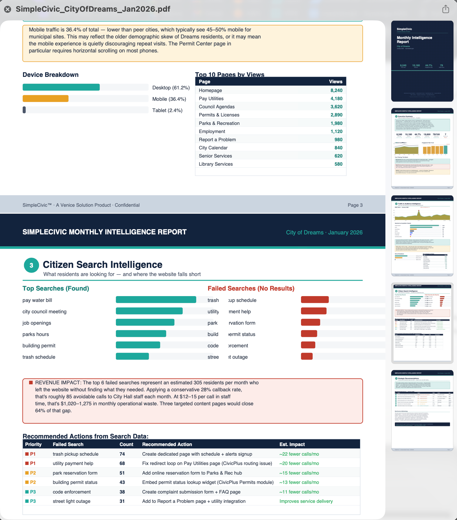 SimpleCivic provides you with straightforward insights to improve your site and serve your website visitors better. No tech expertise required.